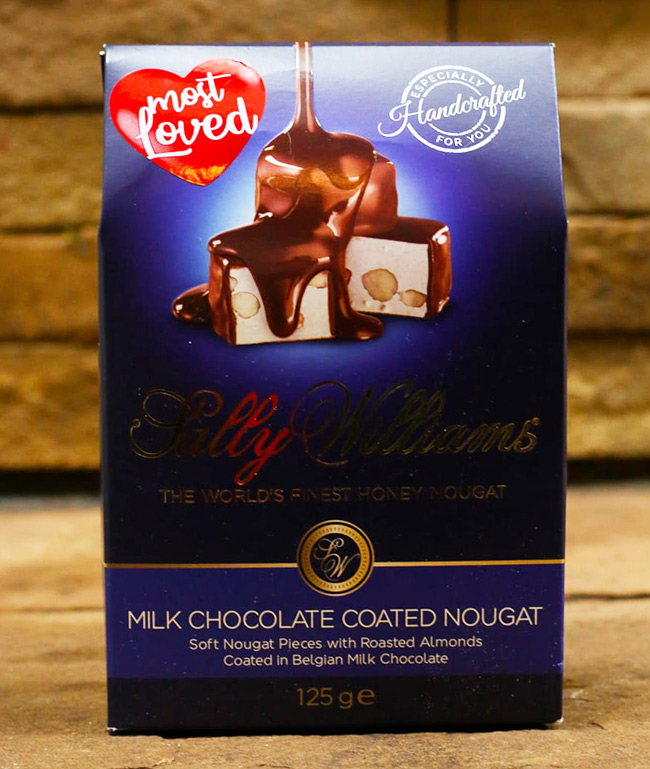 Sally Williams milk chocolate coated nougat 125g.